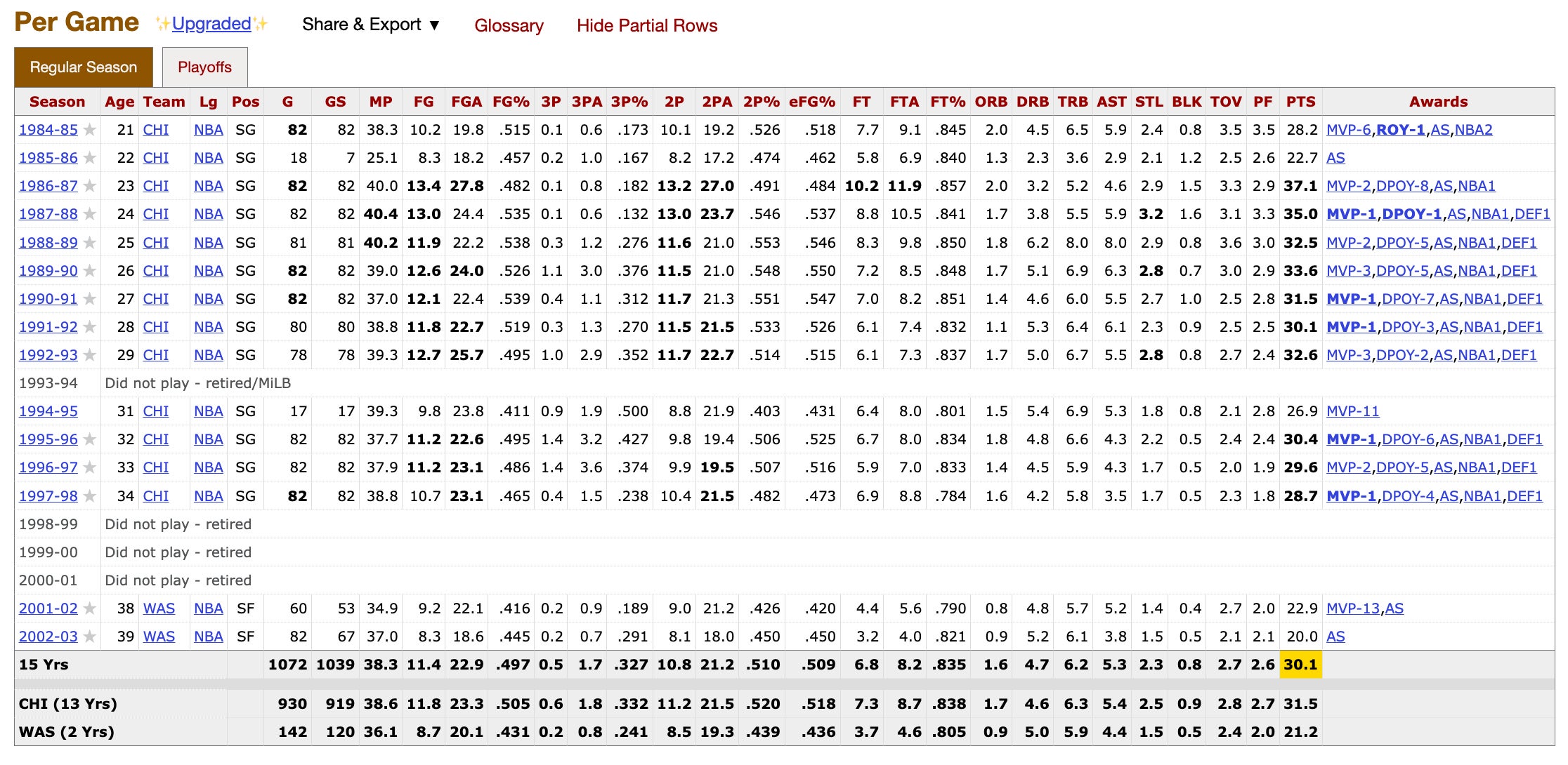 Now wait a goddamn minute. You mean to tell me one of the fiercest competitors in the history of sports, a player with this type of game log throughout his career