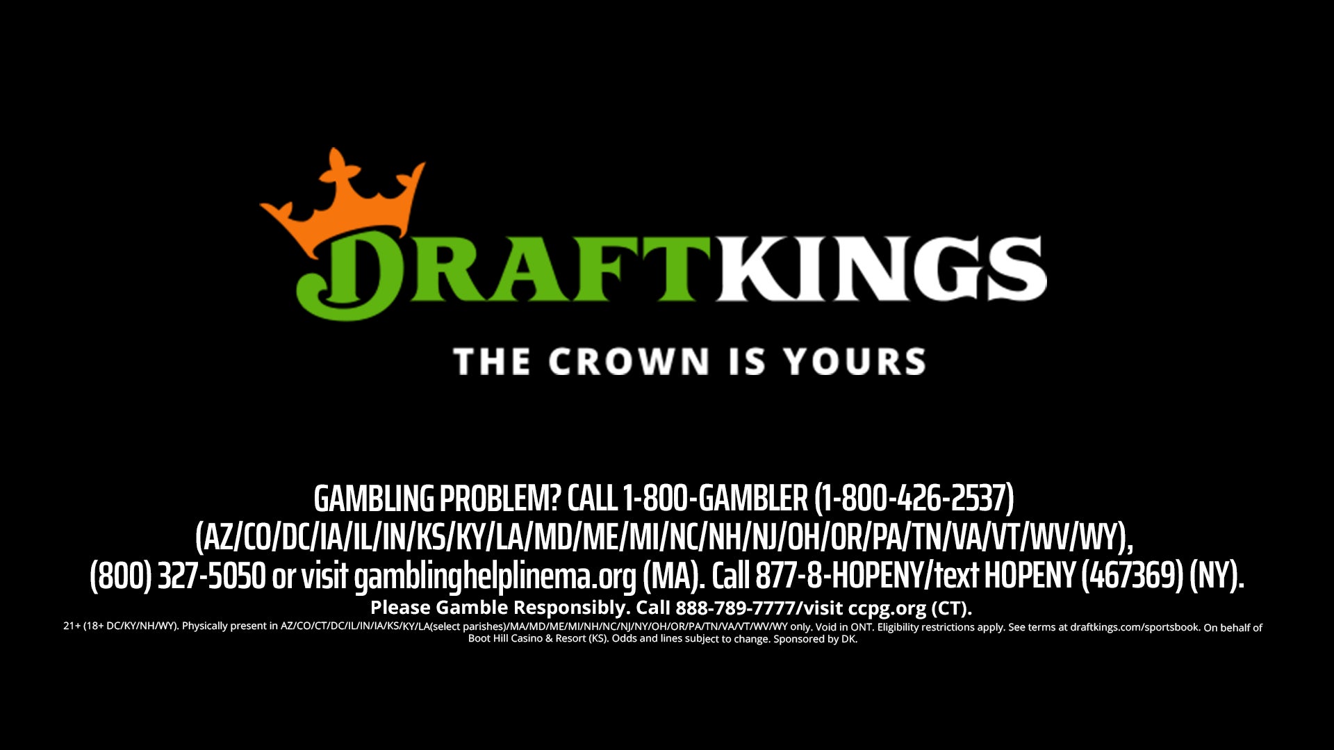 Call 877-8-HOPENY/text HOPENY (467369) (NY). Please Gamble Responsibly.