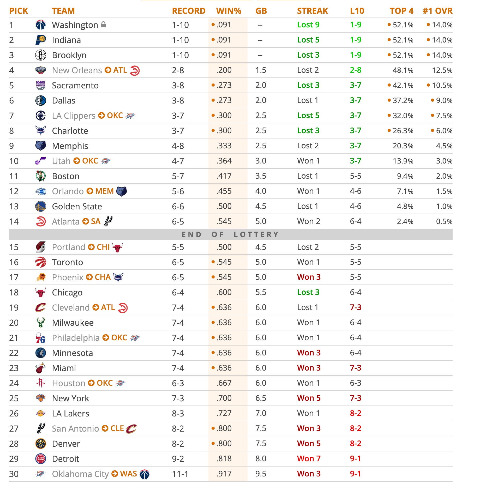 - Own an unprotected pick from a team that looks destined for the Lottery